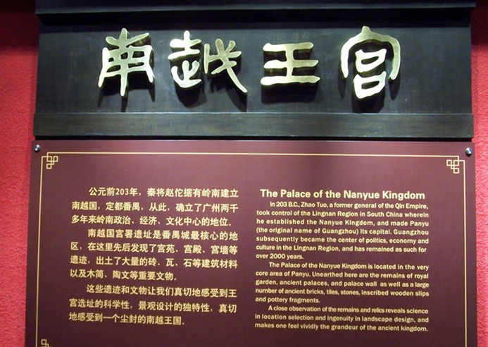 1995年、1997年在廣州北京路與中山四路交會處,發(fā)現了兩千年前趙佗建立的南越王宮署遺址。南越國宮署御苑中的大型石構水池和曲流石渠設計之獨特,構筑之精巧,規(guī)模之宏大,令人贊嘆不已。這處遺址先后兩次被評為全國十大考古發(fā)現。據悉這是中國迄今發(fā)現最早的御苑遺址,對研究古代建筑、古代園林和南北民族融合的歷史有重要的價值,是中國文化瑰寶,為廣州歷史名城精華所在。