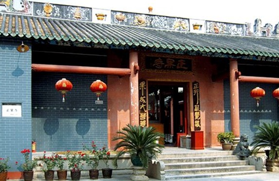 正果佛爺寺,又稱佛爺寺,位于廣東省增城市荔城鎮(zhèn)東北17公里的正果鎮(zhèn)瑞山東麓。相傳,宋代增城金牛都番峰村香浦塘有一牧童,8歲便喜談佛道,天性慈善,后于明山寺削發(fā)為僧,北宋皇右元年(1049)坐化于瑞山一石上,僧徒遂以其肉軀裝塑,名為賓公佛,又稱牛仔佛,并建寺祀之。今正果地名即取自牧童坐化得道而成正果之佛教用語。正果寺以東1.5公里處,有皇右元年的摩刻“成佛巖”3個大字。