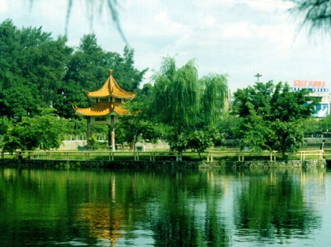 鱷湖共有12公頃的水面。雖然比不上大家閨秀般的杭州西湖,也算得上小家碧玉了;雖然沒有杭州西湖深厚的歷史文化沉積,卻也處處閃耀著客家文化的亮點(diǎn)。鱷湖青曲”是河源老八景之一,幾經(jīng)整治,鱷湖現(xiàn)在更加清波蕩漾,湖四周花香樹茂,垂柳夾岸,成為商業(yè)旺區(qū)一道旖旎的風(fēng)景。