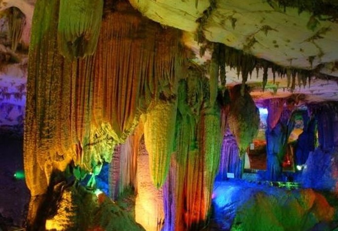 洞中石鐘乳發(fā)育完整,形似水簾洞,大水簾洞觀看猴獅爭霸;到九龍廳領(lǐng)悟福壽智慧的最高境界;入古井底探尋地下河的影蹤;上九重天做神仙逍遙一回;特別是人間仙境、瑤池勝景,由清澈而平靜的水面將石鐘乳倒映出來,形成讓人不得不為之驚嘆的海底世界奇觀,整齊景觀在廣東眾多溶洞中可算一流,瑤池仙境、夢幻海景給游客的好像是真實的感覺一樣.