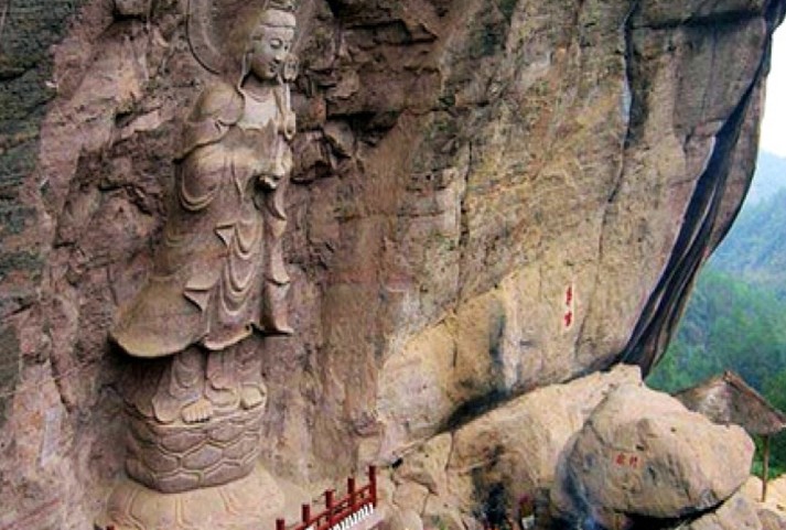虎嘯巖位于二曲溪南,怪石崔嵬,流水迂回,是一個獨具泉石天趣的佳境。“虎溪靈洞”4個大字高勒于巖上。蟠踞在一線天北面,相傳曾有仙人騎虎吼嘯其上,故名。“虎嘯”之聲,來自巖上的一個巨洞,山風穿過洞口,便發(fā)出怒吼,聲傳空谷,震撼群山。主要景點有天成禪院和虎嘯八景。