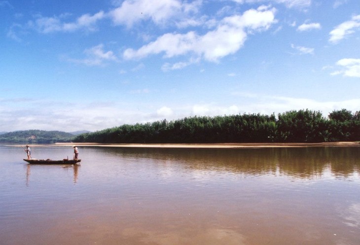 在風(fēng)景秀麗、古樸的東江上可以看到一塊灘涂,是由于江水在這轉(zhuǎn)了一個急彎,泥土聚積在河床上,而形成一個灘涂,故稱為“曲灘”。當東江水位低的時候,曲灘的面積會更大些。岸上的村莊也因這曲灘而得名,叫曲灘村.