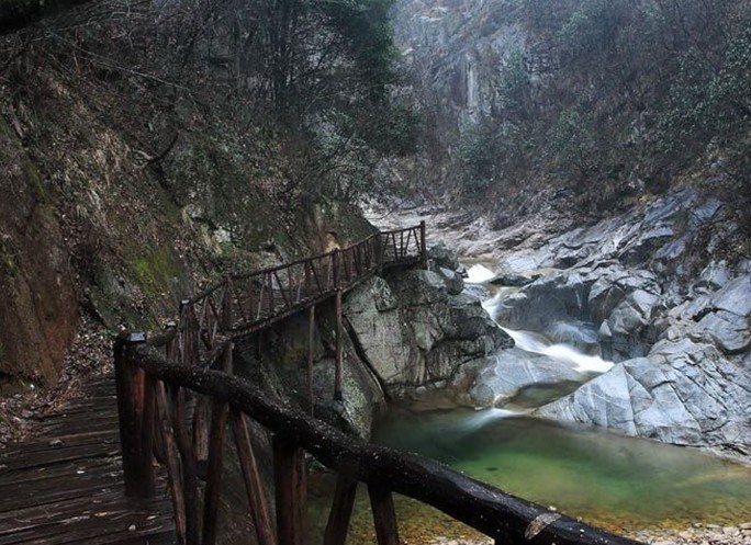 ◇一線天:亦名“一線曙光”,人在澗底,仰首張望,昭昭一線,長(zhǎng)可半里,故曰“一線天”。