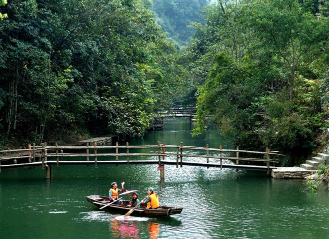 土匪窩探秘探險游覽區(qū)隱逸于茫茫天子山脈中,連綿3.5公里,集俏、隱、幽、奇、險、古、拙于一體。游覽區(qū)內奇峰怪石,美潭跌水、原始森林、古樹奇花等塑造了千姿百態(tài)、異趣橫生的、爭奇斗艷的自然形態(tài),顯示了大自然鬼斧神工的杰作。設有山寨大門、生態(tài)環(huán)保木棧道、馬蹄路、神奇的滿歸泉、姻緣同心鎖、樹屋、機關陣、練武場、土匪雞賽跑、套土匪雞、抓土匪蛋、冰泉浴等,以原生態(tài)自然景色為主導,使游客置身其中,深度參與和體驗,釋放原始野性、融入自然。