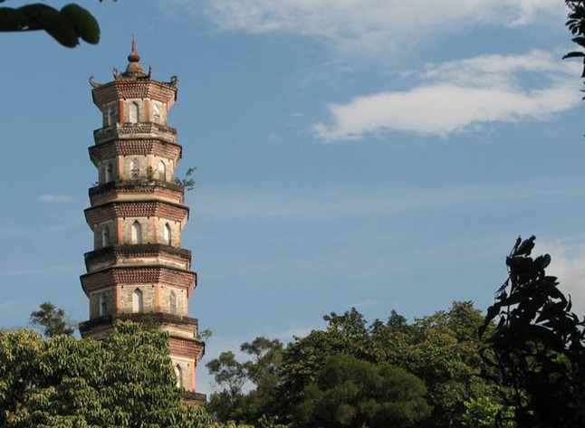 塔外為7層,內(nèi)13層,磚木結(jié)構(gòu),為樓閣式佛塔。明嘉靖四十三年(1564年)塔毀,萬歷初年改建亭,四十六年(1618年)復(fù)建塔。光緒初年,雷破塔頂一角,長(zhǎng)了一株榕樹,丘逢甲詩云:“行人欲問朝云墓,版權(quán)所有山東聊城聊之旅國(guó)際旅行社有限公司,轉(zhuǎn)載必究!看取亭亭塔頂榕。”建國(guó)后修復(fù),增建了步級(jí)扶梯。山上綠樹成蔭,亭廊排映,景色秀麗,登塔眺望,惠州全景盡收眼底。