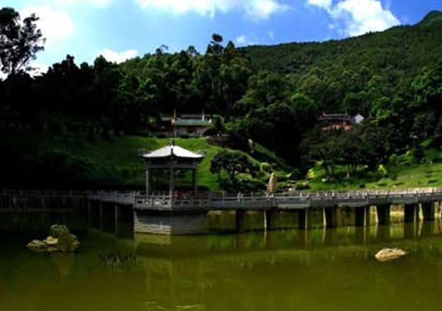 位于惠東縣平山東南4公里處,因有九條山脊似和條龍而得名。這里有以譚公祖廟為中心的大小10余座廟亭和動(dòng)人的神話故事,傳說(shuō)六百多年前,譚公童年在此放牛,后得道成仙,后人為紀(jì)念他而建造廟亭,祖廟始建于元代未年,清道光三年重修,廟內(nèi)建筑畫(huà)棟雕粱,精致優(yōu)美,大門(mén)有一對(duì)石獅,一副對(duì)聯(lián)“聲動(dòng)虎蛇龜盡伏,功施風(fēng)雨露無(wú)偏。”