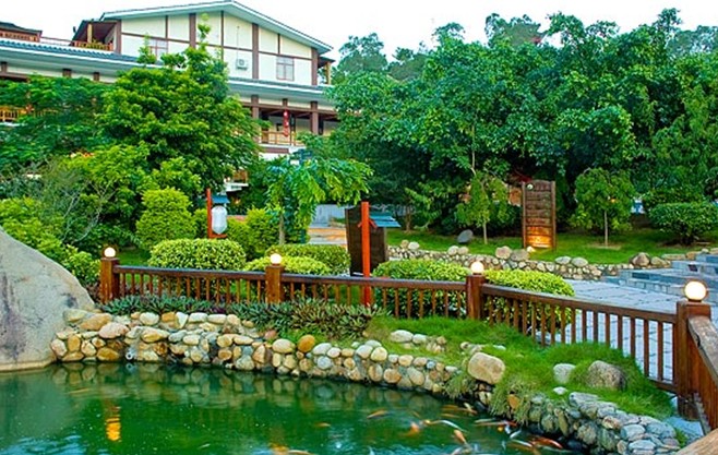 投資2.3億元依山而建的古兜溫泉,集山、泉、湖、海為一體,風景優(yōu)美,有著豐富的溫泉資源,在古兜山下新近落成的溫泉谷,格調(diào)高雅,打造出一個不同凡響的溫泉王國。溫泉谷中間有一條約150米長的人工鵝卵石河道,它不僅為景區(qū)增添了春山幽谷的野趣,更和中央水區(qū)的大舞臺及各大小泡池相連,將谷內(nèi)建筑群落自然分成了三大區(qū)域:北邊是歐式風格的“羅馬殿”,東邊則是日本和式風格的“東瀛閣”,南邊是“唐宮”。