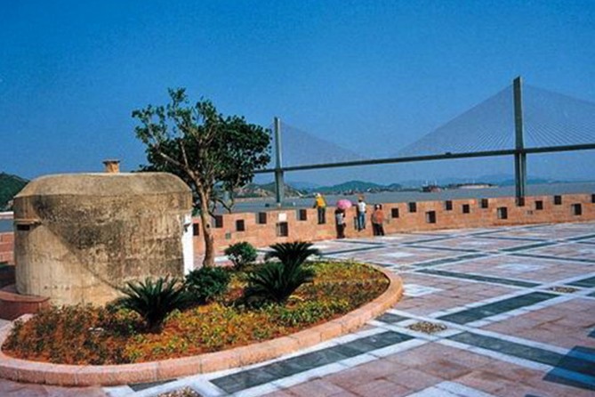崖門古炮臺位于新會崖門出海水道東岸的古井鎮(zhèn)官沖村,最早設(shè)置于清康熙五十七年(1718年),并形成雛形,后于清嘉慶十四年(1809年)正式設(shè)立興建。崖門古炮臺雄踞新會崖山,倚山面海,緊緊扼守著珠江八大出??谥弧麻T通往南海的進出水道。崖門大橋是跨越崖門水道的特大型雙塔單索面斜拉橋,全長1289米,跨度668米,橋下可通航5萬噸級船舶,跨度之大為目前國內(nèi)同類型橋梁之最,亞洲第一,世界第二。