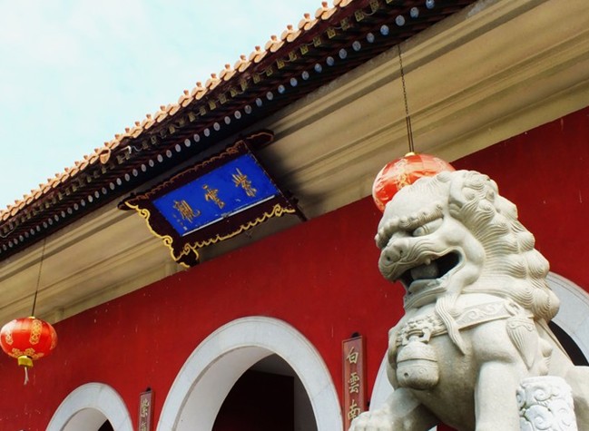 遠望這座仿古建筑群,流光溢彩,氣勢非凡。門前有6000多平方米的停車場,室外的地面砌花崗巖石,綠樹紅花點綴其間。版權(quán)所有山東聊城聊之旅國際旅行社有限公司,轉(zhuǎn)載必究!進入山門后,兩邊分別是鐘樓和鼓樓,中間有一座漢白玉石雕砌的會仙橋。各建筑物的梁柱和走廊間繪制了許多花鳥、山水、人物圖畫,體現(xiàn)了濃厚的文化品味。宮觀內(nèi)各殿堂安坐的神像有靈官護法、玉皇大帝、三清道祖、呂洞賓仙師、黃大仙、斗姆、六十太歲、關(guān)圣帝君、北帝、李涵虛祖師、觀音大士、天后、龍母等九十多尊。神像雕塑,道骨清相,神態(tài)逼真,形象慈祥、威嚴、端莊。