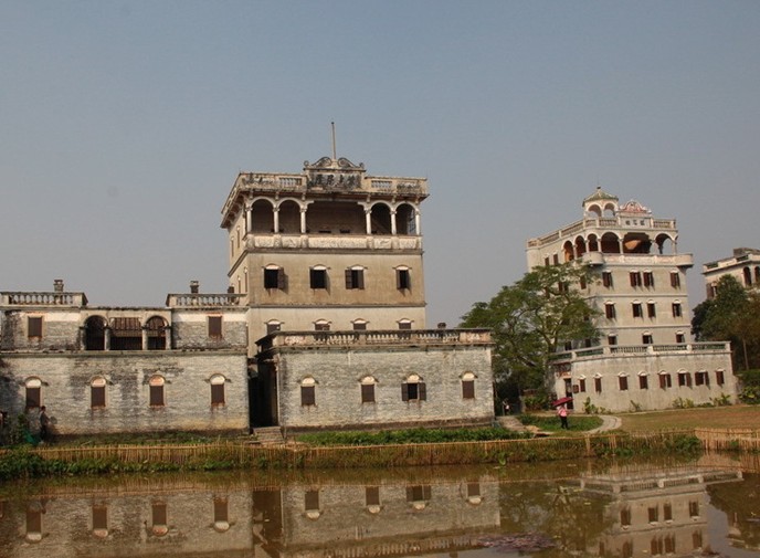 建筑風格方面,很多帶有外國的建筑特色,有柱廊式、平臺式、城堡式的,也有混合式的。這些碉樓。有的是根據(jù)建樓者從外國帶回的圖紙興建的。