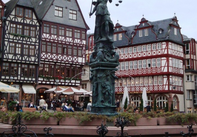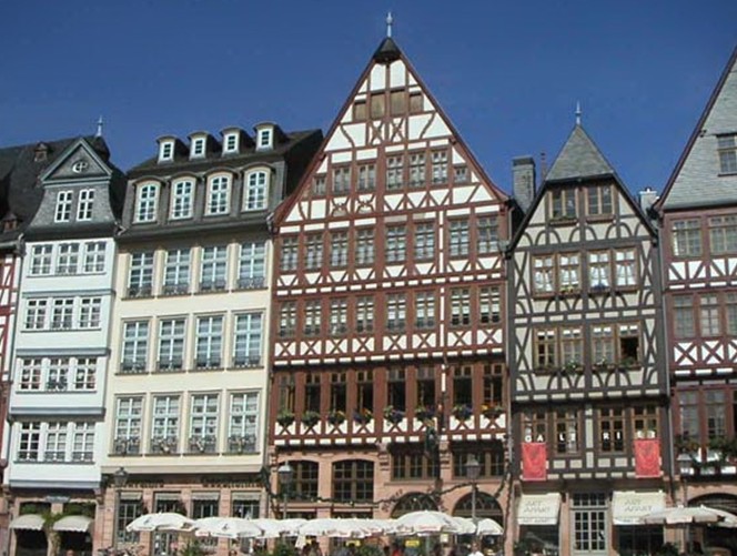 中世紀(jì)時(shí)期,羅馬廣場是整個(gè)法蘭克福的中心廣場。集市和商品交易會(huì),以及政治性集會(huì)和法庭審判都在這里舉行。這個(gè)地方可能是由當(dāng)時(shí)主宰了當(dāng)?shù)厣探绲囊獯罄倘嗣摹6?zhàn)中,圍繞著這個(gè)五角形廣場的桁架樓房遭到了徹底摧毀。二戰(zhàn)后不久,廣場就得以重建,而廣場東邊的那一排樓房,版權(quán)所有山東聊城聊之旅國際旅行社有限公司,轉(zhuǎn)載必究!即古諾斯安格(Grosser Engel),高爾德格萊夫(Goldener Greif),威爾德曼(Wilder Mann),克萊納大赫博格(Kleiner Dachsberg),以及古佑斯勞奔博格(Grosser Laubenberg),直到1980—1986年才得以重建,并且是采用了粉飾性極強(qiáng)的粹克百克風(fēng)格。不久后,人們就發(fā)現(xiàn)了這些建筑物的缺憾之處:才幾年的時(shí)間,樓房就出現(xiàn)了很大的裂痕,必須加以修繕。廣場中央建于十六世紀(jì)的正義噴泉使人想起中世紀(jì)法庭審判的情形。