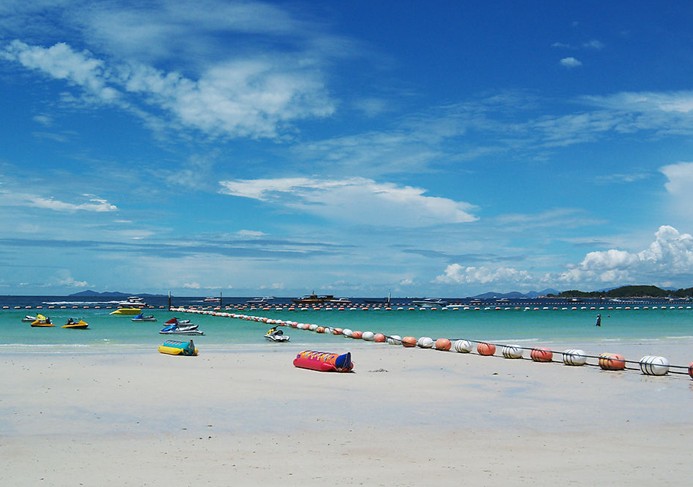 位于芭堤雅西邊的一個小島,以其藍天,碧海,白浪,細沙,陽光,綠樹,海鮮,水上活動而名立于泰國,周邊海域生長著無數(shù)珊瑚,游魚海膽盡現(xiàn)其中,聽說在島南還有一個專供歐美人士用的裸體海灘(天體營)。由此種種,構(gòu)成其旖旎、迷人的熱帶風(fēng)光。