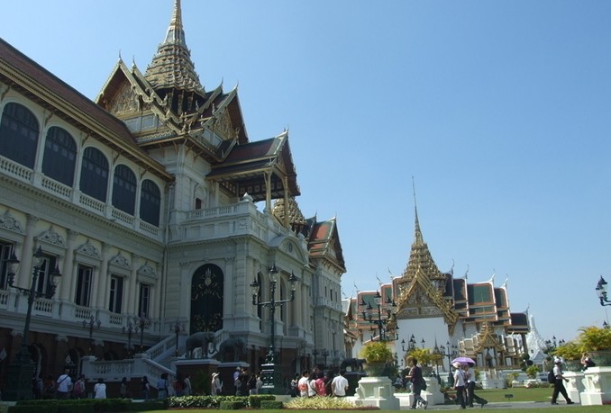 大皇宮(The Grand Palace)緊鄰湄南河,是曼谷中心內(nèi)一處大規(guī)模古建筑群(計(jì)28座),總面積二十一萬八千四百平方米。大皇宮是仿照故都大城的舊皇宮建造的,經(jīng)歷代君王不斷擴(kuò)建,終于建成現(xiàn)在這座規(guī)模宏大的大皇宮建筑群。大皇宮是泰國(guó)諸多王宮之一,是歷代王宮保存最完美、規(guī)模最大、最有民族特色的王宮。曼谷王朝從拉瑪一世到拉瑪八世,均居于大皇宮內(nèi)。1946年拉瑪八世在宮中被刺之后,拉瑪九世便搬至大皇宮東面新建的集拉達(dá)宮居住。現(xiàn)在,大皇宮除了用于舉行加冕典禮、宮廷慶祝等儀式和活動(dòng)外,平時(shí)對(duì)外開放,成為泰國(guó)著名的游覽場(chǎng)所。