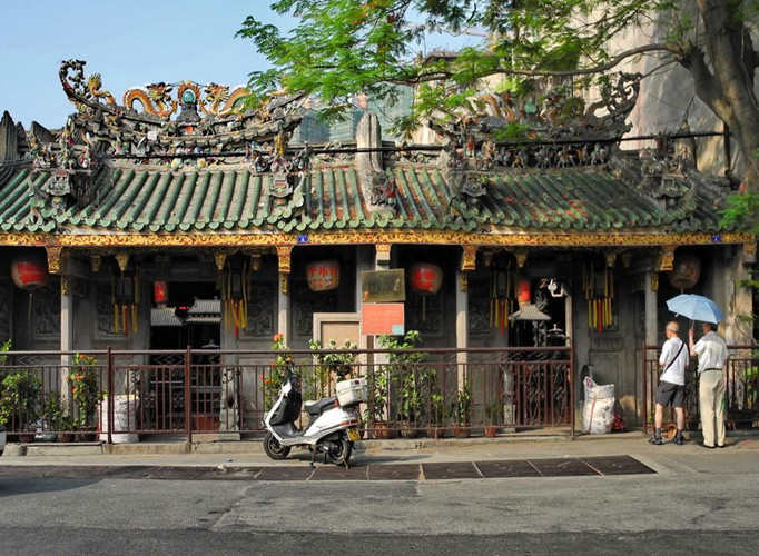 大家在參觀的時候,請注意欣賞廟內(nèi)的各種潮汕工藝。比如門壁的石質(zhì)浮雕、梁柱的木雕彩繪,都具有很高的審美價值,特別是一對由整塊石頭雕刻的透雕盤龍柱石,上有八仙立像,工藝十分高超,過去只有在皇宮和孔廟才能見到。屋頂?shù)那洞伤囆g(shù),是潮汕工藝特有的技術(shù)。用燒制好的彩色陶瓷片,版權(quán)所有山東聊城聊之旅國際旅行社有限公司,轉(zhuǎn)載必究!拼制出各種戲文圖案,人物栩栩如生,又不怕風(fēng)雨的侵蝕,現(xiàn)在已經(jīng)廣泛運用到民間建筑中了。