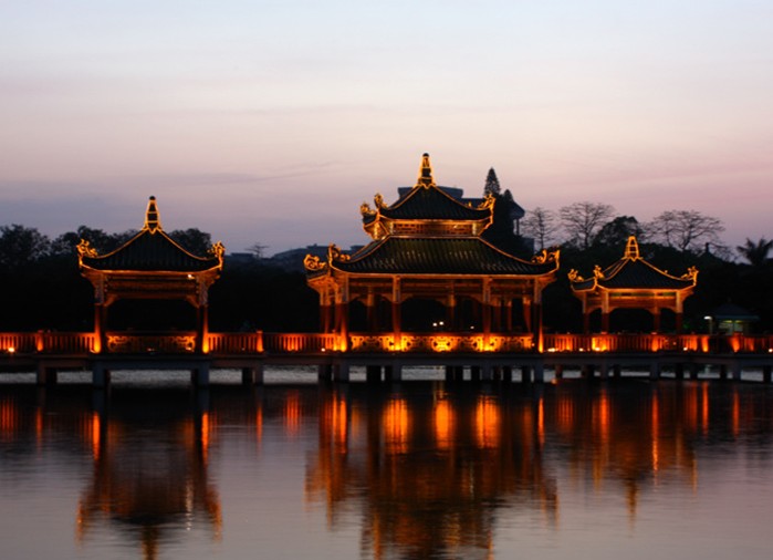 這是1986年建成開放的新景點。它采用中國庭園設計手法,庭廊相接,曲折回環(huán)。館中陳列著各種新奇花卉和盆景。這是一個小型花苑,如果對盆景有興趣的游客,在這里可以欣賞到很多各具特色的盆景,在“縮景為寸”的天地中領略到各處大自然的美景。宮苑里一年四季鮮花盛開,有不少是熱帶或寒帶才能生長開花的品種,所以這里又是一個鮮花鑒賞的新天地。這座宮苑開放以來,每天都接待不少海內(nèi)外旅游團體和個人,他們都稱贊說:“這是南國獨有的一條風景線”。