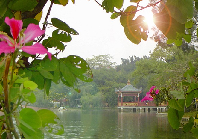 汕頭中山公園于1926年奠基興建,1928年8月28日建成開放,總面積20.18公頃,其中玉鑒湖面積6.3公頃,是汕頭市現(xiàn)存建園歷史最早、規(guī)模最大的綜合性公園。 它四面環(huán)水,北面瀕臨韓江,可以眺望韓江的自然景致,三面是人工河道,用三座橋與市區(qū)相連。中山公園地處鬧市區(qū)又沒有鬧市的喧囂。園內(nèi)水面寬闊,綠樹成蔭,被稱為是汕頭的“市肺”。還是汕頭新八景之一。