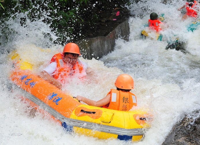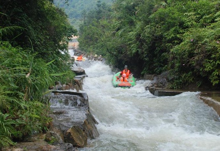 清遠(yuǎn)黃龍峽漂流河道兩岸群山奇石綿延,植被蔥翠,郁郁蔥蔥,游客穿石繞壁、凌波逐浪之間亦免除陽光暴曬之苦,全程舒適寫意,充分領(lǐng)略大自然生態(tài)之壯美。清遠(yuǎn)黃龍峽漂流全程約1.5小時(shí),每日接待量約8000人次,游客可乘景點(diǎn)中巴或旅游大巴直接到達(dá)漂流起點(diǎn),大大縮短了等待時(shí)間。它是全國唯一的雙S回旋彎賽道及多個(gè)精心賽道設(shè)計(jì)讓游人真正體驗(yàn)到挑戰(zhàn)自我的樂趣,而整個(gè)河道經(jīng)年初精心整葺,煥然一新,水質(zhì)大幅提升之余亦做足安全保障。