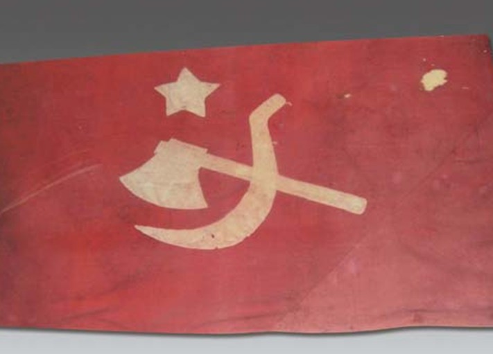 海豐農(nóng)民運(yùn)動(dòng)在彭湃同志的帶領(lǐng)和中國共產(chǎn)黨的領(lǐng)導(dǎo)下,取得了很大的成就,于1927年11月建立了全國第一個(gè)蘇維埃政權(quán)——海豐縣蘇維埃政府。該旗為1927年蘇維埃時(shí)期的黨旗,是我黨較早的一面旗幟。