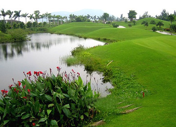 球場(chǎng)配備國際先進(jìn)水平的配套設(shè)施,最先進(jìn)的電腦系統(tǒng)以及排水設(shè)備,時(shí)刻保持最佳打球環(huán)境。球場(chǎng)延緩蘇格蘭古樸風(fēng)范,展開夢(mèng)幻般絢麗場(chǎng)景:充水鄉(xiāng)韻味的球場(chǎng)內(nèi),一條全長(zhǎng)1.5公里的海岸線;星羅棋布的人工湖,與小河交織成網(wǎng), 將球場(chǎng)雕塑成一塊塊開頭各異的"綠洲"。揮桿者乘船打球,乘船往來,成為高球場(chǎng)一大特色。飄逸起伏的球道或直向上,跌宕而下;或逼仄曲折,撲朔迷離;或?qū)掗熯b長(zhǎng),草天相接。