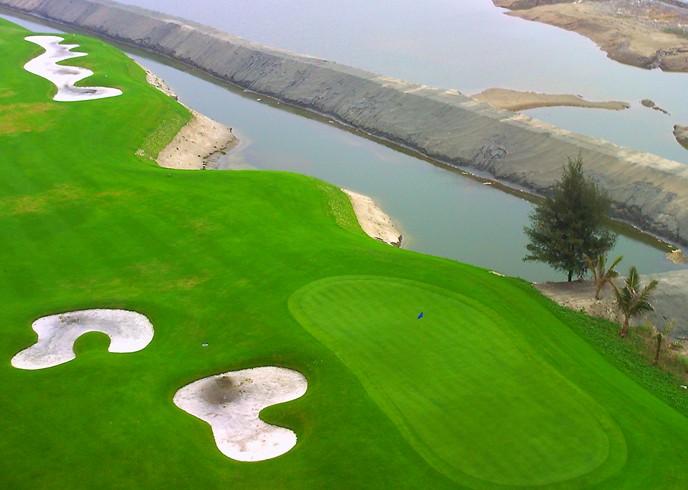 海爾國際高爾夫球會(huì)坐落于廣東省海豐縣魚后門鎮(zhèn),占地4000多宙(含海島。灘涂等),這里地處有“黃金海岸”之稱的紅海灣畔,面朝碧波翻騰的南海,背依峰巒起伏的南山,是符合國際旅游標(biāo)準(zhǔn)的度假勝地。5公里長(zhǎng)的海岸線,地勢(shì)平緩。灘如銀雪,灣如新月。充滿水鄉(xiāng)韻味的球場(chǎng)內(nèi),一條全長(zhǎng)2.5公里的小河,星羅棋布的人工湖,與小河交織成網(wǎng),將球場(chǎng)雕塑成一塊塊形狀各異的“綠州”。海麗國際高爾夫球會(huì)是由沙灘27洞及島上9洞組成,36洞國際標(biāo)準(zhǔn)的錦標(biāo)賽高爾夫球場(chǎng)。