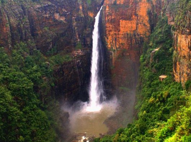 峽谷頂部地貌平緩,壺口瀑布從200多米的懸崖峭壁飛流直下,形成了氣勢磅礴的山水奇觀。另有一條坡度達50度斜角的1386級石階的“通天梯”可達谷底。峽谷溝壑縱橫,奇峰林立,古木參天,構(gòu)成一幅巧奪天工的山水畫卷。