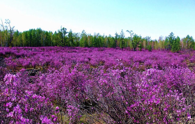 興安杜鵑林沿“林海石瀑”圍成一周。版權(quán)所有山東聊城聊之旅國(guó)際旅行社有限公司,轉(zhuǎn)載必究!每值五月中旬,姹紫嫣紅的興安杜鵑襯著尚未完全消融的皚皚白雪,在沉睡九萬(wàn)多年的玄武巖上怒放。紅色杜鵑花和白色的積雪交相輝映,錯(cuò)落有致地分布著,苑若仙境。所以,這里也稱(chēng)"杜鵑花山谷"。每年的興安杜鵑節(jié),這里都有欣賞興安杜鵑的活動(dòng)。