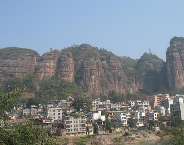 危崖峭壁,與仁化丹霞山同為紅砂巖構(gòu)成。嶺上有三塊大石,堆砌得體,高 嶺上有三塊大石,堆砌得體,高約6米,長20米,高踞嶺巔,狀似欲啼雄雞,故名。此外,還有許多摩巖石刻和其他景觀,天賦形勝,四季雄奇。在隆冬季節(jié),山上白雪皚皚,銀裝素裹,更有一番景致。金雞嶺屬丹霞地貌,海拔338米,四周懸崖如削,雄偉險(xiǎn)峻。東門有一字峰,長400米,高130米,寬僅2--4米,豎看成峰,橫看成壁,似一巨大屏障。金雞嶺因其險(xiǎn)要,成為兵家必爭之地。嶺上留有太平天國領(lǐng)袖洪秀全的妹妹洪宣嬌的練兵場、兵器巖、中軍帳等遺址。