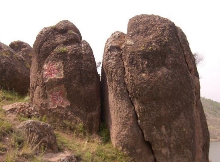 "天下第一神龜",逼真、形象、奇大,中外游人稱之為"絕世珍品"。"外星人","寶黛石",高幾十米,粗十幾米,高高聳立在永興湖的西山上,稱"世上無雙",怎樣形成,無人破解。"飛來石",怎樣飛來,怎樣一劈為四,留下串串懸念。"平安洞"的神奇,"海豚癡情"的浪漫,"臥佛"的神秘,"草原風(fēng)光"的嫵媚,給你留下無限的遐想和回味。永興湖輻射四面,東面有"大廟古遺址",距今有一萬年的歷史,西面有忙牛山"山高入云",原始森林,南面有古城"剎虎口"內(nèi)蒙古山西的交界處古長(zhǎng)城,北面有"哈達(dá)山"狀似狹谷,站在山上頭暈?zāi)垦?,深不見底,有南方氣?shì)。外星人很早以前,不明飛行物降到永興湖的西山上,人們不敢近前,后一道人經(jīng)此處,明其祥是外星人化石。該石約有30米高,十幾米粗,矗立在山頂上。外星人的形象逼真,耳朵、眼睛、鼻子清晰可見,特別是他的嘴巴,仿佛要把世界吞下去,夜闌人靜,仿佛聽到他的唱歌聲,以后人們來這里燒香保佑平安、幸福。 寶黛石:位于永興湖西面的高山上,距湖約有3公里。版權(quán)所有山東聊城聊之旅國際旅行社有限公司,轉(zhuǎn)載必究!寶黛石高30米,粗十幾米,氣勢(shì)如磐,雄偉、挺拔。游人到此贊嘆不已,仿佛身臨其境。一人前往,望而卻步。因兩塊巨石形狀似人,而賈寶玉又是石頭所為,故稱寶黛石。有人說到永興湖,不到寶黛石,猶如到中國不到長(zhǎng)城,終生遺憾。