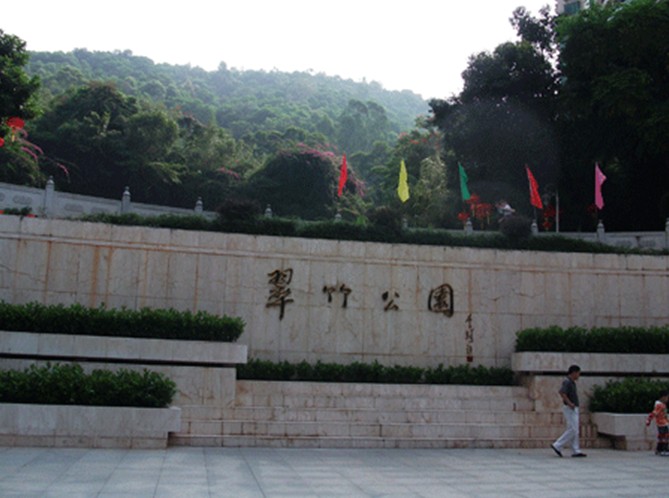 翠竹公園位于深圳市羅湖區(qū)翠竹路1078號,北臨太寧路,西、南分別與翠竹路、東門路接壤,東臨水庫新村等生活區(qū)??偯娣e45.13公頃。整個公園以山地丘陵為主,多山頭,坡勢較陡。最高峰位于公園南部,海拔153.24米。1996年9月,市政府成立公園籌建辦公室,暫定名為大頭嶺公園。1999年8月市編委辦批準正式定名為翠竹公園。