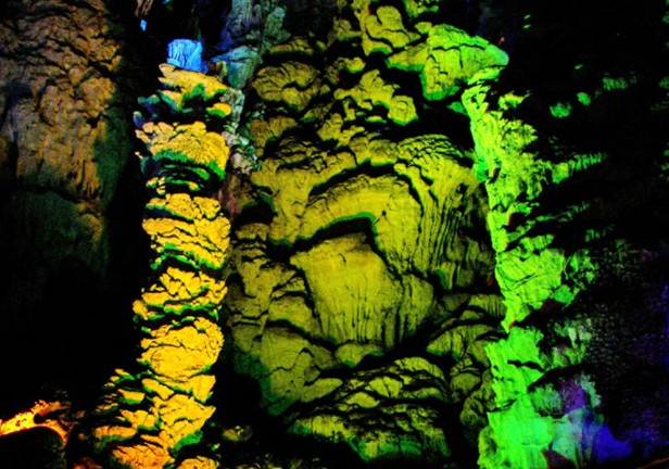如果按照每一百年生長(zhǎng)一厘米的速度計(jì)算,長(zhǎng)到四十二米的高度,最少也要四十多萬(wàn)年。換句話說(shuō),當(dāng)北京猿人用火燒烤食物的時(shí)候,第一滴含有碳酸鈣的水珠,就濺落在凌霄大廳的平臺(tái)上了。在熔巖結(jié)晶中,擎天玉柱算得上一位年邁的長(zhǎng)者,凌霄巖中還有許多年輕的鐘乳石,它們的出生年齡,比擎天玉柱要晚得多。