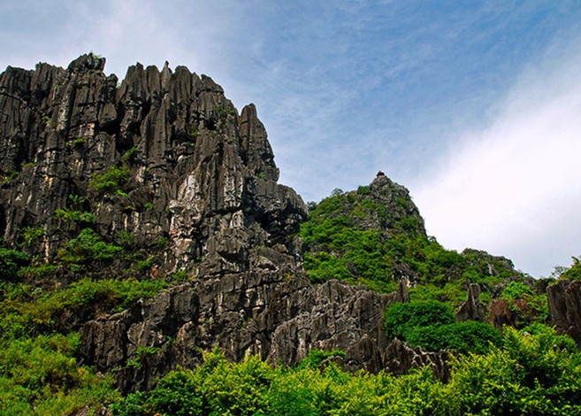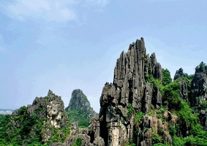 春灣石林,又名“蓮花洞石林”,位于陽春市春灣鎮(zhèn)春灣風(fēng)景區(qū)內(nèi),占地200多畝,山上有馬頭峰、駱駝峰、蓮蓬峰、蛤蚧石、觀音拜月石、仙人過坳石、百頁劍門等怪石。從百頁劍門進(jìn)入石林中,石峰奇突,景象萬千。有似“童子拜觀音”、“猛獅過嶺”、仰天嗥叫的野狼像等石頭。春灣石林位于陽春市,距龍宮巖600米,是一大片石林,由"百頁劍門"、"馬頭峰"等6座石山峰巒組成,最壯觀的是石劍峰(也叫百頁劍門),如刀槍劍戟,挺拔陡峭、直插云天。