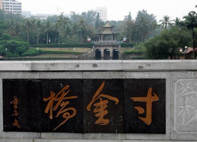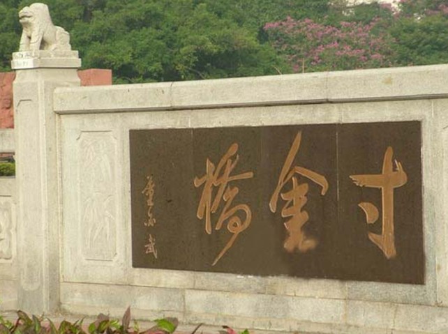 寸金橋位于湛江市赤坎區(qū)寸金路原廣州灣租界西面界河赤坎河(又稱文章河)上。河水連接寸金橋公園月影湖,橋之西為華界,橋之東為租界,是為紀(jì)念1898 ━1899年遂溪人民反抗法國強租廣州灣的斗爭的史志性建筑物。1925年遂溪縣麻章區(qū)紳民建,原有的“寸金橋”隸書橋名刻石,現(xiàn)存湛江市博物館??谷諔?zhàn)爭時期重修,1959年和1986年擴(kuò)建,為石砌單拱式水泥橋面橋梁,全長19米、面寬11.6米,單拱園徑6.5米,橋面南北兩側(cè)各置欄柱,人車分道。橋頭東西有董必武、郭沫若題詞橋匾,董必武題書“寸金橋”,郭沫若題“一寸河山一寸金”。接著,路改名寸金路,版權(quán)所有山東聊城聊之旅國際旅行社有限公司,轉(zhuǎn)載必究!公園改名寸金橋公園,車站和酒家均以“寸金”命名。一九五九年人民政府重修“寸金橋”,并于橋旁立碑(有碑文),從此“寸金橋”成為抗法斗爭的一個象征性建筑物。一九六○年,郭沫若到湛江觀看粵劇《寸金橋》,題詩有“一寸河山一寸金”之句,“寸金橋”名聲更著。 西山公園一九八○年改名“寸金橋公園”(因“寸金橋”在其旁,公園博物館內(nèi)有抗法斗爭專題陳列)。一九八四年初又于公園內(nèi)豎立大型雕塑《寸金橋抗法斗爭紀(jì)念雕像》,參觀的人絡(luò)繹不絕。