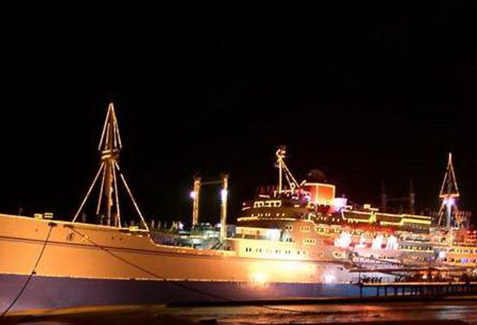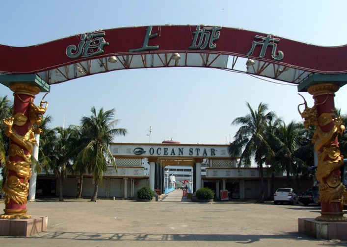 “海上城市”原名“巴西瑪魯”,是日本一艘國際遠(yuǎn)航客貨輪,已有四五十年的歷史,船長 156米、寬19.6米,共有七層,排水量達(dá)1.7萬噸。1954年下水,1951年載中日友好青年代表團(tuán)訪問中國,后改為旅游船,停泊在日本旅游勝地鳥羽市港灣,1997年由珠海華瑩集團(tuán)引進(jìn),次年落戶于湛江,與雄偉的南海艦隊(duì)軍港隔海相望。