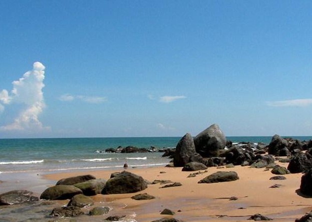 龍水嶺是航船進(jìn)出湛江的咽喉之地,是天然的“綠標(biāo)”,其地下有被遺棄的軍事工程,洞穿山腰,機(jī)關(guān)巧沒,詭不可記,現(xiàn)擬開發(fā)為多功能的娛樂場所——“地下龍宮”。龍水嶺海拔不高,相形于平均自然標(biāo)高約20米的東海島有“登龍水嶺而小東海”之感。站立于山頂,東海島的自然風(fēng)光盡收眼底,向西注目,田疇千里,翠綠點(diǎn)綴,云蒸霞蔚,面東遠(yuǎn)眺,瀚海無涯,一碧萬頃,漁帆點(diǎn)點(diǎn),片云天遠(yuǎn),近看,白浪層層,銀沙如練,側(cè)耳傾聽,林海颯颯,濤聲陣陣。龍海天一望無際的大海,連綿無盡的海岸線直映眼簾,腥咸的海風(fēng)夾雜著陽光的氣息,撲臉而來,漂浮在清冽的海水中,任那層層白浪撲打,隨那陣陣濤聲經(jīng)唱,你心中的什么煩惱都會飛到九霄云外。這里水清沙細(xì),坡平且長,平時人跡罕至,在海灘上經(jīng)常可以看到的是漁夫“拉大網(wǎng)”。若買些剛打上來的魚、蝦、螃蟹,三五知己在太陽傘下即烹即食,那才是神仙過的日子。