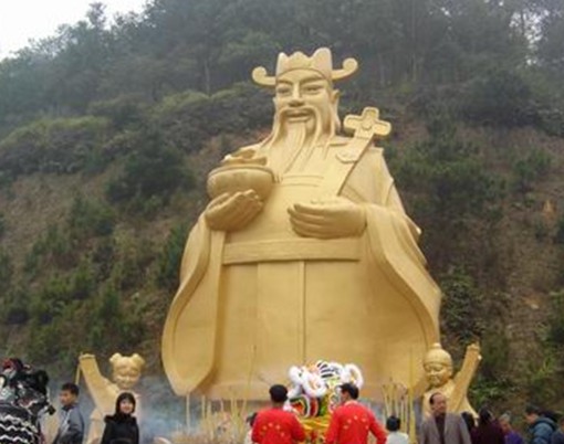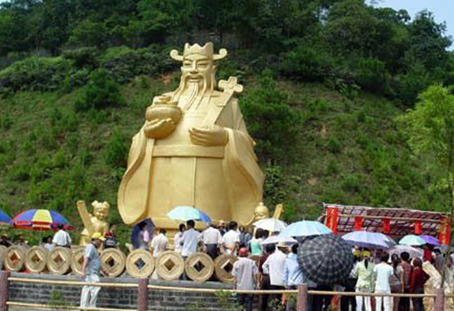 聚寶天地和君子園兩大部分:進入由金磚作墻、兩錠巨大金元寶托起一串金燦燦的古錢幣的景區(qū)大門,便是聚寶天地,走過九宮八卦飛星圖轉運壇。隔湖可見一尊全國最大的財神塑像,手捧聚寶盆向人們惠賜財運,轉身而望,兩塊寶錠與一座青山組成的天然巨大寶錠遙遙相對應,何其相似乃爾!環(huán)湖邊是一條由一個個金錢鋪就的丁財路。