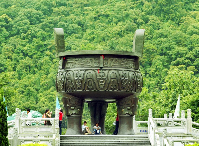 鼎湖山寶鼎園是鼎湖山開(kāi)發(fā)后的一個(gè)新亮點(diǎn)。鼎是中華古代文化的一個(gè)象征。國(guó)家主席江總書(shū)記在聯(lián)合國(guó)贈(zèng)鼎儀式上指出:"鼎作為一種重要禮器,象征著團(tuán)結(jié)、統(tǒng)一和權(quán)威,是代表和平、發(fā)展、昌盛的祥物"。鼎湖山寶鼎園位于肇慶市鼎湖山的天湖景區(qū),占地約1.3萬(wàn)平方米,園內(nèi)青山環(huán)抱,風(fēng)景優(yōu)美。在寶鼎園下的“鼎湖”(山頂之湖)及相連的山谷新近開(kāi)辟了一條蝴蝶谷探險(xiǎn)旅游線,能觀賞到黑桫欏等國(guó)家一級(jí)珍稀植物及自然林景色,有七、八個(gè)瀑布,游程約一個(gè)多小時(shí),很受游客歡迎。寶鼎園中的鼎名叫九龍寶鼎鼎,高6.68米,口徑5.58米,重16噸,為世界之最。此鼎具有寬大的雙耳,外側(cè)各飾10條蟠龍,二十寓意置立此鼎喜迎新千年的時(shí)代。版權(quán)所有山東聊城聊之旅國(guó)際旅行社有限公司,轉(zhuǎn)載必究!口沿下有三組對(duì)稱龍紋,為六龍,加上三足頂端有三個(gè)大龍頭,共有九龍。九是最大數(shù),龍是中華民族象征,九龍?jiān)⒁馍羁?。腹部是波曲紋,環(huán)回旋曲,似眾多重疊山嶺,寓意祖國(guó)大地山川充滿生機(jī)和穩(wěn)定。由著名青銅器專家、國(guó)家文物鑒定委員會(huì)委員馬承源教授設(shè)計(jì)創(chuàng)作。“九龍寶鼎”整座由青銅澆鑄而成,鼎身和鼎足共鑄有九條金龍,鼎身連續(xù)不斷的環(huán)帶紋飾,線條粗獷,具有西周時(shí)期鼎形制最為穩(wěn)定雄健和質(zhì)樸莊嚴(yán)的特點(diǎn)。中國(guó)歷史博物館決定永久收藏九龍寶鼎子鼎,并向肇慶市頒發(fā)了收藏證書(shū)。鼎身和鼎足共鑄有九條金龍,騰云駕霧,栩栩如生,氣勢(shì)恢宏,安穩(wěn)地屹立在花崗巖的基座上,象征著中華民族江山社稷永固,穩(wěn)如磐石。