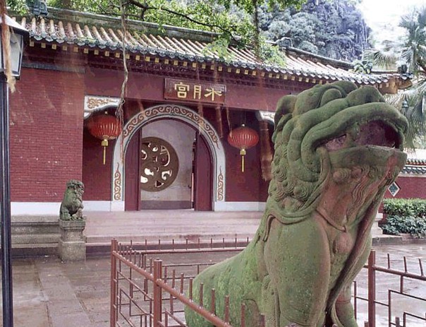 水月宮,位于肇慶市星湖中心區(qū)石室?guī)r南麓,北靠崧臺,面臨紅蓮湖,曾因立有高6米、重7噸的銅鑄佛像摩利支天而聞名省港澳和東南亞各國。 水月宮原為觀音堂,建于明嘉靖年間(1522-1566年),但“頻年為風雨所折”,后得官民“樂于趨事”,遂于明萬歷二年(1574年)冬“辟廣升高,壯址展基”。 據(jù)傳,觀音能顯現(xiàn)32種不同的應化色相,其中以“水月”色相最為高潔,因名“水月宮”。