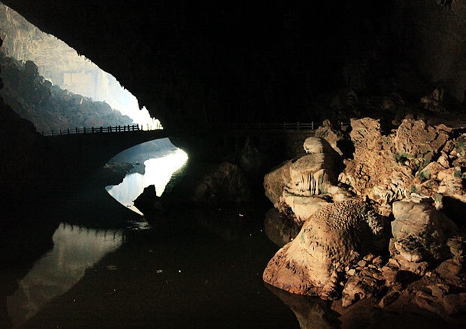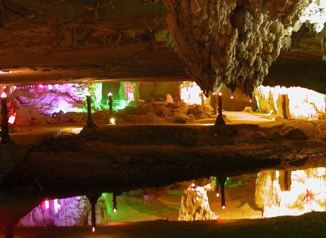 洞中曲徑通幽,石筍、石柱、石鐘、石人、石馬、石獅••••••或依或臥,或垂或立,栩栩如生。有將軍騎馬、梁祝攜手、三妹放歌、觀音坐蓮、寶鴨倒影、和尚念經(jīng)、庵中尼姑等五十六景。這些景點(diǎn)倒影在溪水之中,更是一幅幅奇麗的畫(huà)圖,使人遐想連篇。從前,洞內(nèi)建有立琴?gòu)R、文昌閣、劉三妹寺等景物。傳說(shuō)歌仙劉三姐當(dāng)年為逃避地主老財(cái)?shù)谋坪?,在洞中居住多年,天天在這里唱歌。民間傳說(shuō)劉三姐在這里升仙,留下的化身便成了“三妹放歌”的景點(diǎn)。
