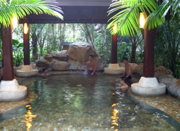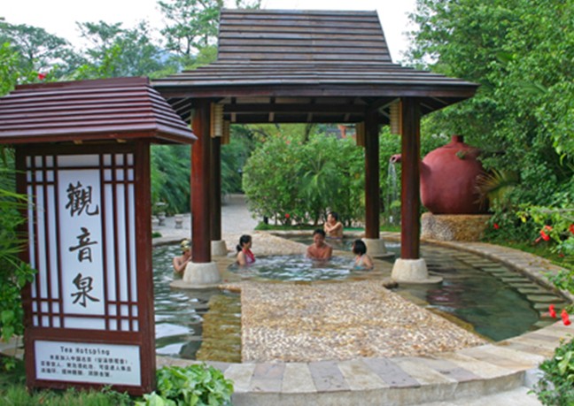 仙沐園被稱為“嶺南第一溫泉”,出水口溫度高達(dá)93攝氏度,含有20多種礦物質(zhì)和微量元素,共有特色溫泉38種,如“香薰冰泉按摩池”、“牛奶池”、“咖啡池”、“薄荷池”等,其中的中國首個“香薰溫泉礦砂島”采用的是優(yōu)質(zhì)礦物砂石,配以富含多種礦物質(zhì)的溫泉水,并加以名貴香薰油造成的。