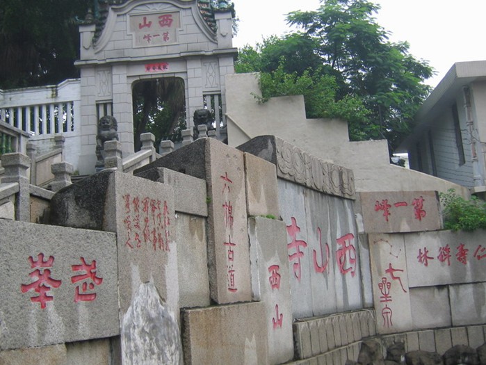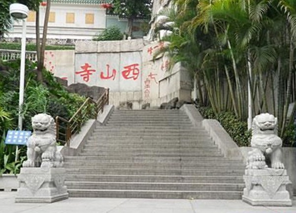 中山西山寺俗稱西山寺,位于廣東省中山市城區(qū)西山公園內(nèi),始建于明朝嘉靖年間,是讀書人喜聚之地。清道光年間,邑人曾望顏曾在此攻讀詩書,至咸豐六年(1856年)他任陜西巡撫署四川總督時,特募資將古寺加以擴建。由隱泉庵派僧人心恒為主持,歷代相傳,到1949年已傳至十三代?,F(xiàn)寺內(nèi)有伽蘭殿、韋陀殿、大雄寶殿、準提殿、觀音殿、六祖殿、地毅殿、塔殿等,頗為壯觀。