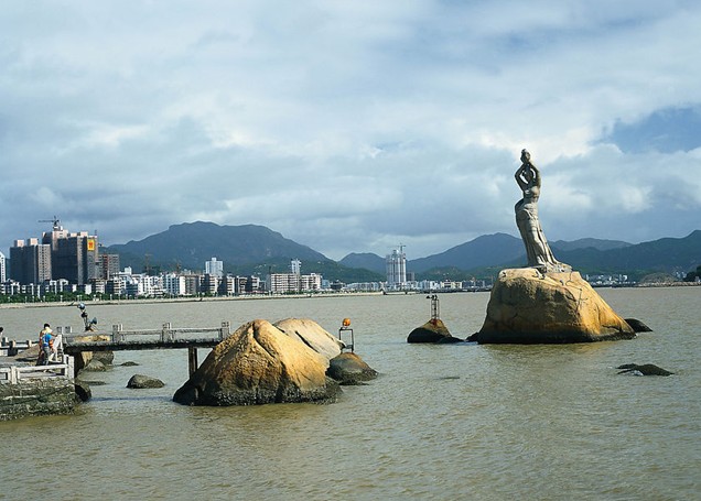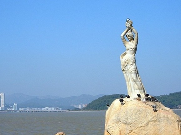 珠海市風(fēng)景秀麗的香爐灣畔,矗立著一尊巨型石雕——珠海漁女,一條美麗整潔的環(huán)海大道——情侶路從她身旁穿過,更使她顯得純潔而大方。她領(lǐng)戴項(xiàng)珠,身掮魚網(wǎng),褲腳輕挽,帶著喜悅而又含羞的神情雙手高高擎舉著一顆晶瑩璀璨的珍珠,獻(xiàn)給德高望重的九洲長老,并向世界昭示著光明,向人類奉獻(xiàn)珍寶。版權(quán)所有山東聊城聊之旅國際旅行社有限公司,轉(zhuǎn)載必究!這座石雕,有8.7米高,重量10噸,用花崗巖石分70件組合而成,是中國著名雕塑家潘鶴的杰作。而今,這座雕像已成為珠海市的象征,是珠海一處著名的免費(fèi)的旅游景點(diǎn)。漁女優(yōu)美的傳說,伴隨著珠海市在國內(nèi)的知名度,流傳越來越廣、越遠(yuǎn),是珠海市人民的驕傲。