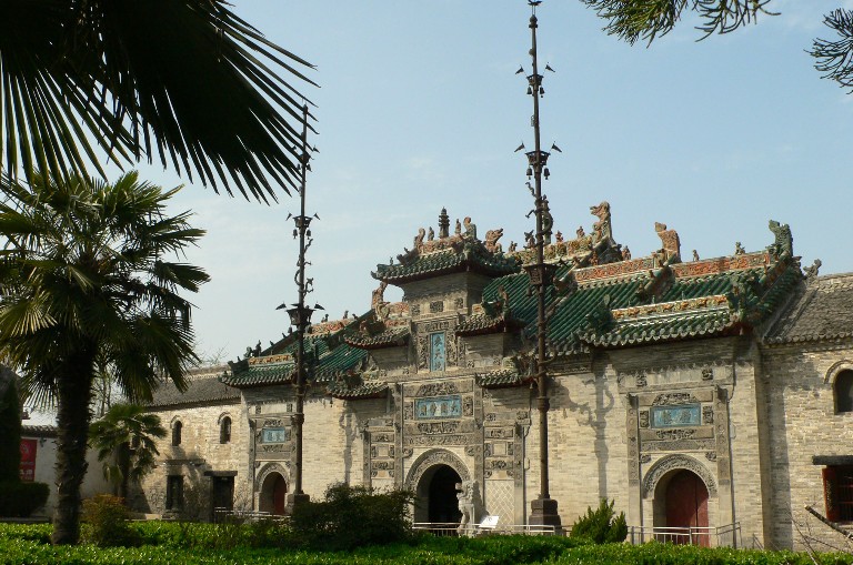 花戲樓有 “三絕”:正門前兩根旗桿,每根重6噸,高16余米,直插云霄,是為花戲樓一絕。旗桿分五節(jié),每節(jié)分鑄八卦蟠龍,頂端鑄丹鳳一只,造型生動,旗桿上還有三層方斗風鈴24只,迎風叮當作響,清脆悅耳。 花戲樓的木雕是第二絕,共雕有三國戲文18出,人物數(shù)百個,神態(tài)各異,龍爭虎斗,呼之欲出。 花戲樓的第三絕在山門?;☉驑堑纳介T是一座仿木結(jié)構(gòu)的三層牌坊式建筑,上面鑲嵌著聞名天下的立體水磨磚雕,玲瓏剔透,琳瑯滿目?;☉驑堑拇u雕,屬徽派微雕藝術(shù),在不足5厘米厚的水磨青磚面上,共雕人物115人,禽鳥33只,走獸67只,樓臺殿閣多處,花草樹木無數(shù),內(nèi)容涉及到中國的宗教、歷史、政治、軍事、風俗民情等諸多方面。版權(quán)所有山東聊城聊之旅國際旅行社有限公司,轉(zhuǎn)載必究!1988年1月國務院公布位全國重點文物保護單位。