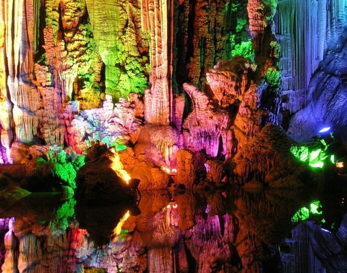 武隆是一個山清水秀的地方。其芙蓉洞也是國家5a級景區(qū),在芙蓉江旁。是1993年發(fā)現(xiàn),1994年對外開放的。它是世界上較大的溶洞群之一,洞內(nèi)全長2700米,幾乎包括了鐘乳石所有沉積類型。洞內(nèi)的“生命之源”“珊瑚瑤池”“巨幕飛爆”“石花之王”“犬牙晶花池”并稱為芙蓉洞“五絕”被世界洞穴專家譽為“斑斕輝煌的地下藝術(shù)宮殿”。特別是珊瑚瑤池系由水池中色澤淺黃的方解石晶花和浮筏石筍構(gòu)成,池水面積約30平方米,水深0.5—1.3米,水質(zhì)清沏透底,珊瑚瑤池以其面積最大的水下晶花為世所罕見,生長在晶花浮筏上的兩根翠玉般的石筍,尤如瑤池中的兩位妙齡仙女,更是洞中之珍品,舉世奇絕,而珊瑚池上的整個上部空間,更為琳瑯滿目的鵝管鐘乳石,石幔、石花和卷曲石等各類沉積物所布滿,顯得無比豪華富貴是洞號稱天下第一洞的標志性景區(qū),據(jù)說此景全國獨一無二,世界上只有法國克拉姆斯洞穴才有,但它的水深和面積沒有芙蓉洞的大。真可謂“此景只應天上有,人間那得幾回". 芙蓉洞是一個大型石灰?guī)r洞穴,形成于第四紀更新世(大約100多萬年前),發(fā)育在古老的寒武系白云質(zhì)灰?guī)r中。洞內(nèi)深部穩(wěn)定氣溫為16.1度。芙蓉洞主洞全長2500米,游覽道1860米,底寬12—15米以上,最寬69.5米;洞高一般8—25米,最高48.3米;洞底總面積37000平方米,其中輝煌大廳面積在1000平方米以上。整個芙蓉洞的最大靜態(tài)和客容量為185000人。 洞內(nèi)各類次生化學沉積形態(tài)(Speleothems,即鐘乳石類,芙蓉洞中有碳酸鹽巖和硫酸鹽巖兩類化學類型)琳瑯滿目,豐富多彩,幾乎包括鐘乳石所有沉積類型,達70多種。如:石鐘乳、石筍、石柱、石幕(小的為石幔)、石瀑布、石旗、石帶、石盾、石葡萄、珊瑚晶花等。其礦物組成主要是方解石和石膏,也有文石、水菱鎂石。其中大多數(shù)種類存在數(shù)量之眾多,形態(tài)(有針狀、絲發(fā)狀、絲縷狀、發(fā)簪狀等)之完美,質(zhì)地分布之廣泛,在國內(nèi)目前的發(fā)現(xiàn)中,多屬絕無僅有,而某些類型,更為國內(nèi)罕見,世界稀有。