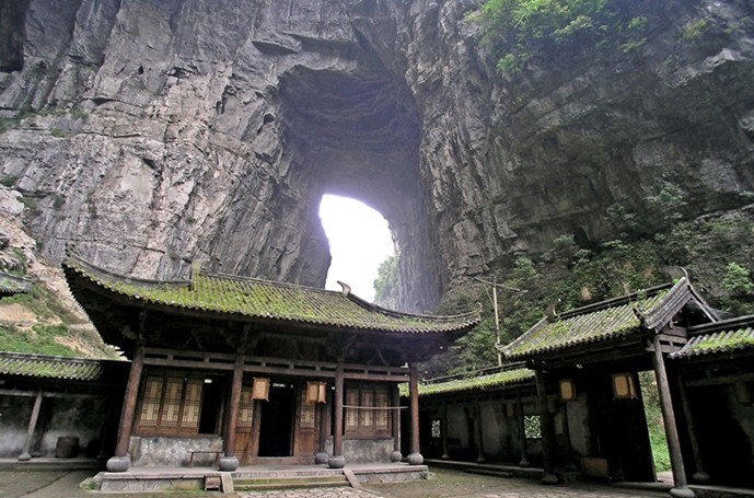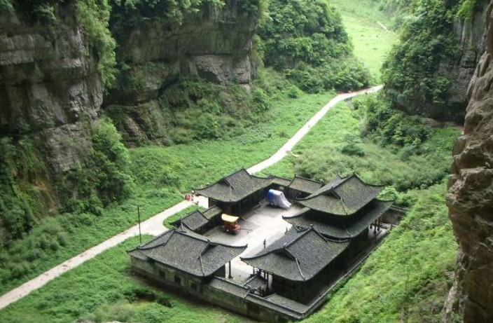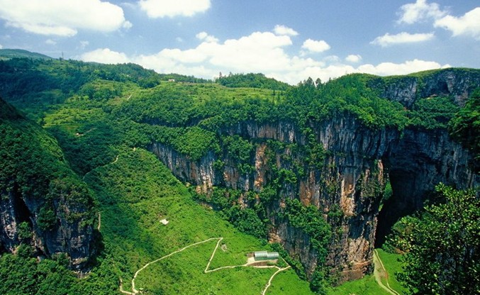 天龍橋即天坑一橋, 橋高200米,跨度300米,因其位居第一,頂天立地之勢而得名。一橋橋中有洞,洞中生洞,洞如迷宮,即壯觀又神奇。青龍橋即天坑二橋,是垂直高差最大一座天生橋。橋高350米,寬150米,跨度400米,夕陽西下,霞光萬道,忽明忽暗,似一條真龍直上青天,故名青龍橋。黑龍橋即天坑三橋,橋孔深黑暗,橋洞頂部巖石如一條黑龍藏身于此,令人膽戰(zhàn)心驚。黑龍橋景色以其流態(tài)各異的“三迭泉”、“一線泉”、“珍珠泉”、“霧泉”四眼寶泉而獨(dú)具特色。