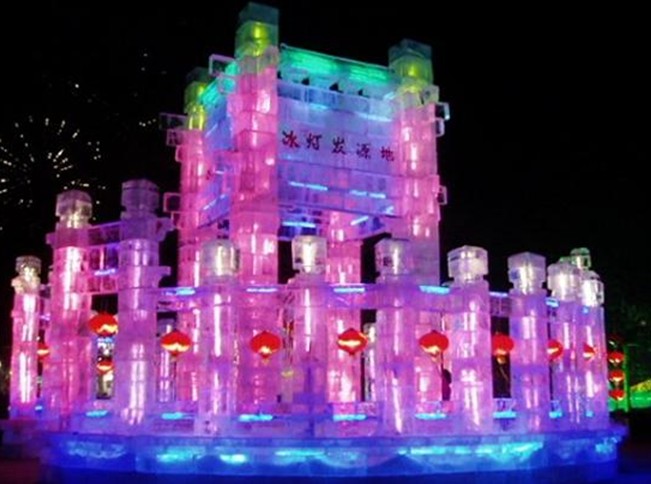 現(xiàn)代獨特的冰質(zhì)造型藝術(shù)與冰景造園藝術(shù),是冰城人開發(fā)利用冰雪資源最為突出的成就之一。它以松花江天然冰、自來水和各種電燈為材料,用砌筑、堆壘、雕刻、噴澆、冷凍和鑲嵌等方法,根據(jù)特定的主題需要和總體布局安排,在不同的園林空間加工出有關(guān)的冰景,冰建筑、冰雕塑、冰 瀑布、冰花壇、冰滑梯、冰書法、冰盆景、冰廣告、冰凍花、冰罩燈,組成若高低錯落、疏密有致的不同景區(qū),形成步步有景、步移景易的冰雪園林,同時配置各種燈光,增加動的成份,輔以音響效果,達到形、光、動、聲的和諧統(tǒng)一。冰燈藝術(shù)是以冰為載體,以燈為靈魂,融繪畫、雕塑、建筑、園林、文學(xué)、音樂等多種藝術(shù)于一身,并可運用光學(xué)、力學(xué)、聲學(xué)及電氣、機械等科學(xué)技術(shù)的新興的造型藝術(shù)。運用這種藝術(shù)形式創(chuàng)造出的珠宮琳館、瓊榭瑤橋、銀雕玉塑、冰山雪嶺、冰凌冰瀑,白晝間千姿百態(tài),晶瑩剔透,入夜后流光溢彩,萬紫千紅,象撲逆迷離的仙山瓊閣,似如夢如幻的水晶宮闕,且年年出新意,歲歲景不同,被稱為"永不重復(fù)的童話世界"。冰雕,即是冰燈中的一個品種,又是一種獨立的藝術(shù)形式。哈爾濱每屆冰雪節(jié)期間,都要分別組織職工、家庭、少年兒童和全國中學(xué)生以及國際性的冰雕比賽,比賽產(chǎn)生的數(shù)百件作品姿態(tài)各異,生動傳神,巧奪天工。