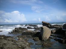 地形因局部折及理發(fā)達,經(jīng)過亙古風(fēng)化、海蝕作用,形成單斜脊、豆腐巖、蕈狀石等各種奇巖怪石,宛如天然地理教室。因風(fēng)景酷似北海岸的野柳,故名小野柳。假日可至此賞海、捉熱帶魚,亦不失為一好去處。