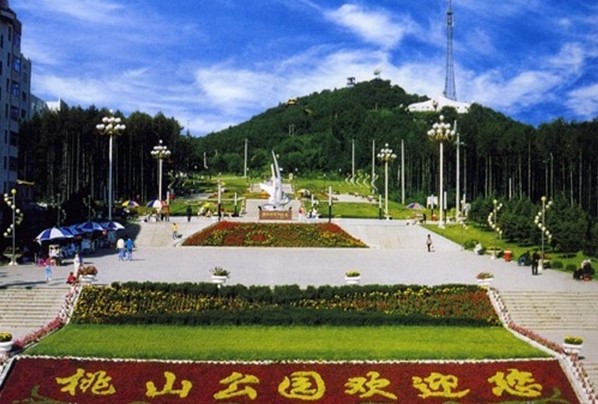 桃山公園位于七臺(tái)河市桃山區(qū)中心地段,始建于一九八五年,占地面積 39公頃,除甬路和建筑外,幾乎全部被草坪、花壇和樹木所覆蓋。全園共栽植花草6500余株,人工草坪24000平方米,還有杜松、垂柳、柏樹、樟子松、蒙古櫟、榛子、柳樹、楊樹,遠(yuǎn)遠(yuǎn)望去,郁郁蔥蔥,繁花似錦,鶯歌燕舞。 桃山公園依山而建,氣勢磅礴。獨(dú)具匠心的設(shè)計(jì)與天然景觀渾然一體,備受游客稱贊。桃山公園東廣場被評(píng)為黑龍江省“一建杯”十佳精品廣場,公園設(shè)計(jì)獲省公園設(shè)計(jì)最高獎(jiǎng)。