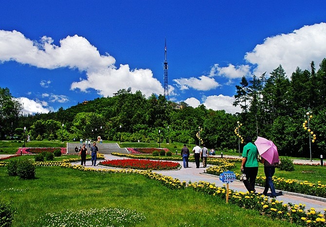從山底通往山頂有三條崎嶇蜿蜒小路、兩條人工臺(tái)階。拾階而上,林蔭蔽日,樹木幽深,景色宜人,累了可在半山腰上的涼亭小憩,邊休息邊欣賞優(yōu)美景色,登上山頂駐足遠(yuǎn)眺,新興煤城一覽無余,遠(yuǎn)山近水,盡收眼底。山下高樓林立,街道縱橫,汽車穿梭,行人如織。遙望遠(yuǎn)處,不時(shí)有一列列裝載著烏金的火車轟鳴而過,跳動(dòng)出新興煤城繁忙而有節(jié)奏的脈波。足踏桃山之巔,你會(huì)頓生出“欲窮千里目,更上一層樓”的感慨,近望山腳,人影憧憧,林中游人時(shí)隱時(shí)現(xiàn),彩色涼亭與綠樹紅花相映成趣,山、水、人構(gòu)成一幅立體的山水畫卷,目之所及,會(huì)令您頓發(fā)百里煤城如此秀美之感嘆。 清晨,是桃山公園最有朝氣的時(shí)刻,人們紛紛來到桃山公園.有扭秧歌的、有打太極拳的、有打羽毛球的、有散步的,人山人海。每個(gè)人的臉上都綻放出幸福的笑容。 桃山公園不僅是大人們休閑的好去處,更是兒童的樂園,年輕的父母可以帶上他們的小寶貝,雙鬢發(fā)白的老人可以帶著心愛的孫子、孫女,在蹦蹦床上蹦上~番,或乘坐兒童小汽車過一把小司機(jī)的癮,在孩子們的歡笑聲中,盡情地去享受美好的天倫之樂。 近年來,政府加大了投資力度,投資700余萬元新建兩處廣場,總面積達(dá)12500平方米。二○○一年新建的東廣場與學(xué)府路相通,造型別致,由山腳一直修到山腰,共有一百多級(jí)臺(tái)階,每隔一段便修有一個(gè)小廣場,花草點(diǎn)綴,造型別致,獨(dú)具特色,還有華麗的路燈,每到夜晚,華燈閃亮,版權(quán)所有山東聊城聊之旅國際旅行社有限公司,轉(zhuǎn)載必究!燈火輝煌,由學(xué)府路的盡頭向廣場望去,路燈像串串明亮的珍珠,一直通往山頂。