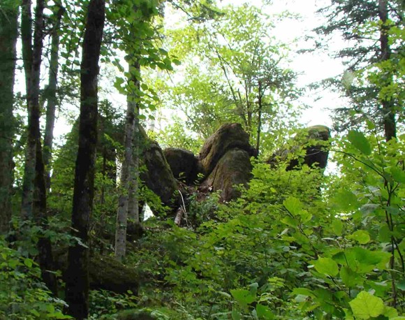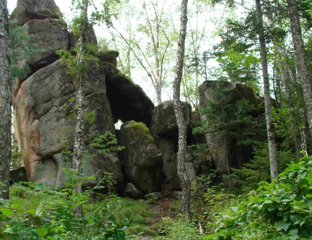 位于距市區(qū)7公里處。在一片密林中,有一簇平地拔地而起,以一塊塊花崗巖巨石砌成的石峰,高大雄偉,其形似柱,稱謂石林。石林由六座石峰組成,南二北四。北面四座一字梯形排列,一高近丈,二高近二丈,三高平二丈,四高一丈半。二峰端長有蒼松一株,似示最高。各峰成形惟妙,二三座石峰間相距極狹,僅尺許,縫如刀切,稱“一線天”。在第四座石峰南5米處,還有兩座石峰,相距不足1米,微低。遠(yuǎn)望,形如雄師臥地,前身支起而后身匍匐,似忠誠的護(hù)林衛(wèi)士。第二叢樹林,在第一叢以東偏南,相距約百米。由三座石峰構(gòu)成,北二南一。北西兩座甚是匹配,高九仞余,其中一座有三個(gè)峰端,有護(hù)林人“家業(yè)興旺”之寓。沿三峰石南側(cè)攀緣而上,至高6米處,鉆過兩塊大石堆成的石門,便到了石峰東側(cè)的平臺(tái),臺(tái)成弧狀,可納十余人。臺(tái)下是陡峭絕壁,其險(xiǎn)令人目眩。臺(tái)之對(duì)面,有一塊呈圓鼓狀、低于平臺(tái)1米之大石,可容四人并坐,版權(quán)所有山東聊城聊之旅國際旅行社有限公司,轉(zhuǎn)載必究!其底部與三峰石相連,有狹道與平臺(tái)相通。登石眺望,可觀得西南方向約20米處的丈余高之石峰,似一擎天巨柱……石林,仿佛小興安嶺建設(shè)者之雄資,在廣袤密林中,手捧奇花異草,伴著山間小溪流水淙淙,迎候著遠(yuǎn)方的客人。