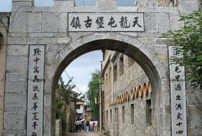 天龍屯堡古鎮(zhèn)地處西進云南的咽喉之地,在元代這里就是有名的順元古驛道,天龍屯堡古鎮(zhèn)最早是順元古驛道上的一個驛站,版權所有山東聊城聊之旅國際旅行社有限公司,轉載必究!名叫飯籠驛。由于軍事地理位置重要,從明代開始就在這里及周邊大量屯兵,時至今日依然是駐軍重地。清朝康熙年間,云貴總督范承勛奉旨實行“改土歸流”后,屯堡人由軍戶轉變?yōu)槠胀ò傩?。天龍屯堡古?zhèn)更名為“飯籠鋪”,由于地理位置的重要性,這里依然是清廷的驛站和屯兵重地。本世紀初,天龍的幾位有名鄉(xiāng)儒感覺飯籠鋪的“飯籠”二字不雅,經提議,取天臺山的“天”,龍眼山的“龍”二字為村寨之名,這就是天龍屯堡鎮(zhèn)“天龍”二字的由來。歷代的屯兵都在這塊大地上留下了歷史的遺跡:明朝征南軍隊在天臺山背后的兵器加工場所(本地人呼之為“打鐵坑”);煙堆山的明代烽火臺殘壘;圍繞天臺山的古城墻;清“威同之亂時”修建有垛口、炮臺、瞭望哨的龍眼山屯,至今殘垣尚存;在天龍屯堡古鎮(zhèn)中,則是巷道縱橫交錯,遍布于巷道中的深邃搶眼,石拱門一夫當關,萬夫莫開的軍事功能,這一切無不顯示出戰(zhàn)爭的遺跡,屯堡人武備的思想。明代飯籠驛最初的建設者是如今天龍“張、陳、沈、鄭”四大姓的入黔始祖?zhèn)儯貏e是身為“通政大夫”的陳典(注:通政大夫是主管郵政的官吏),在天龍設驛站,建塘房(塘房是驛站供來往人員住宿的地方),其他三大姓入黔始祖則建“屯堡”屯扎軍隊。